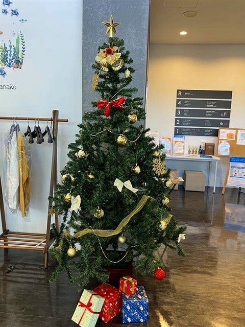 明日から12月・・・ 2025年11月30日(日) スタッフレポート 皆さま、こんにちは(^^)/ 早いもので、明日からもう12月。2025年も残り1か月ですね。 クラブハウス1階、受付前に クリスマスツリーを飾りました。🎄 イルミネーションがキラキラと、とても綺麗に輝いています🌟
