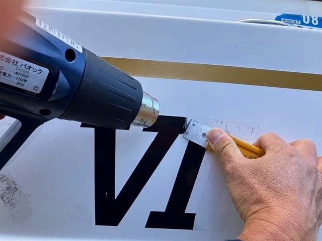 船名をはがす作業は、見た目以上に繊細な作業です。