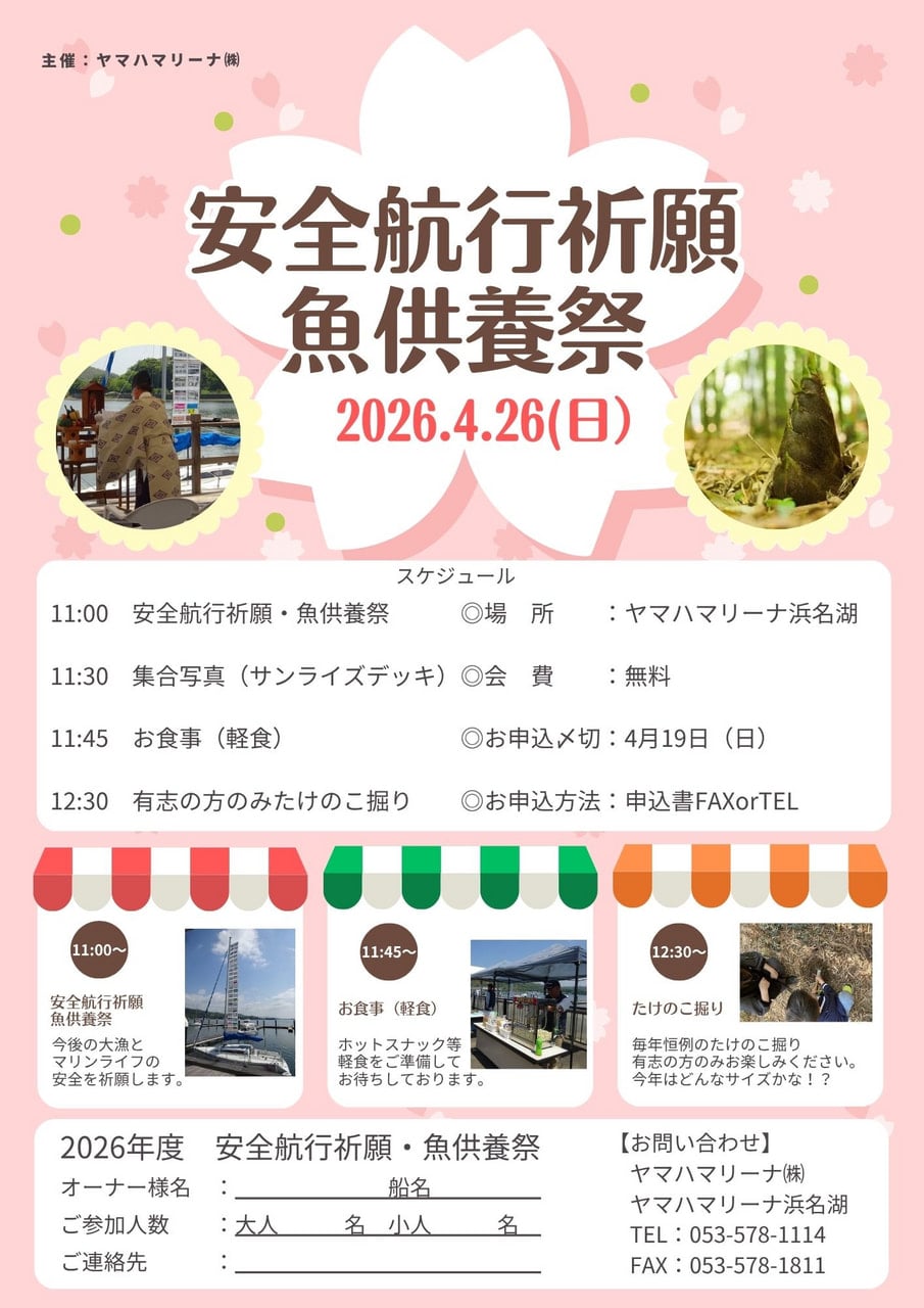 ヤマハマリーナ浜名湖主催『安全航行祈願・魚供養祭』開催のお知らせ!!