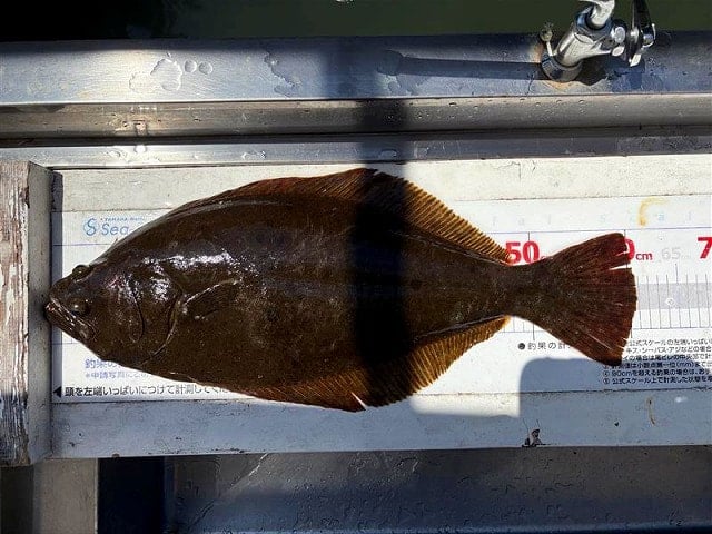 ヒラメはアジの泳がせにて、60㎝オーバーです!