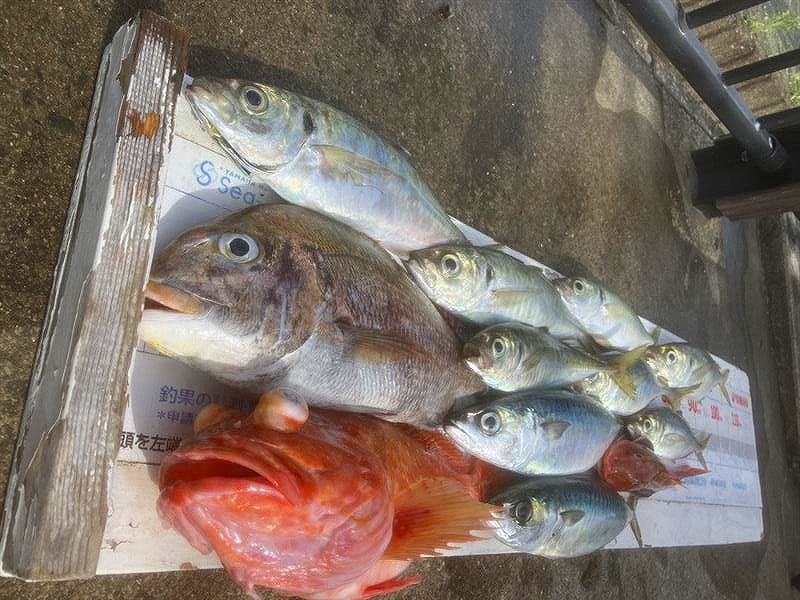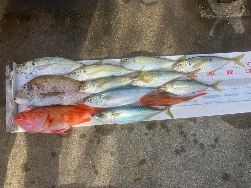 マダイ、ウッカリカサゴ、アジ、マサバ、ホウボウの五目釣り。